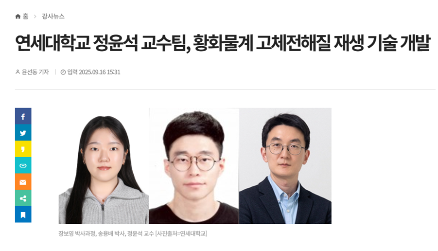 | Professor Yoon Seok Jung's research has been featured in the Korea Lecturer News | ||||||